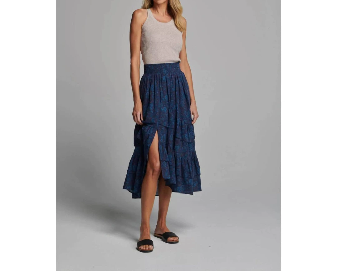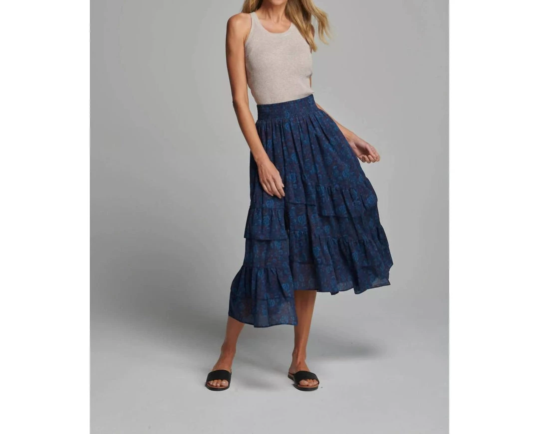 An easy and elevated midi-length skirt, Millie is the perfect addition to your fall wardrobe. Millie has an asymmetric slit with ruffle details.��You are going to want to take her for a spin. Style it back to the Rai tank to complete the look.Fabric & Care100% Cotton.��Machine wash cold with like colors, tumble dry low.