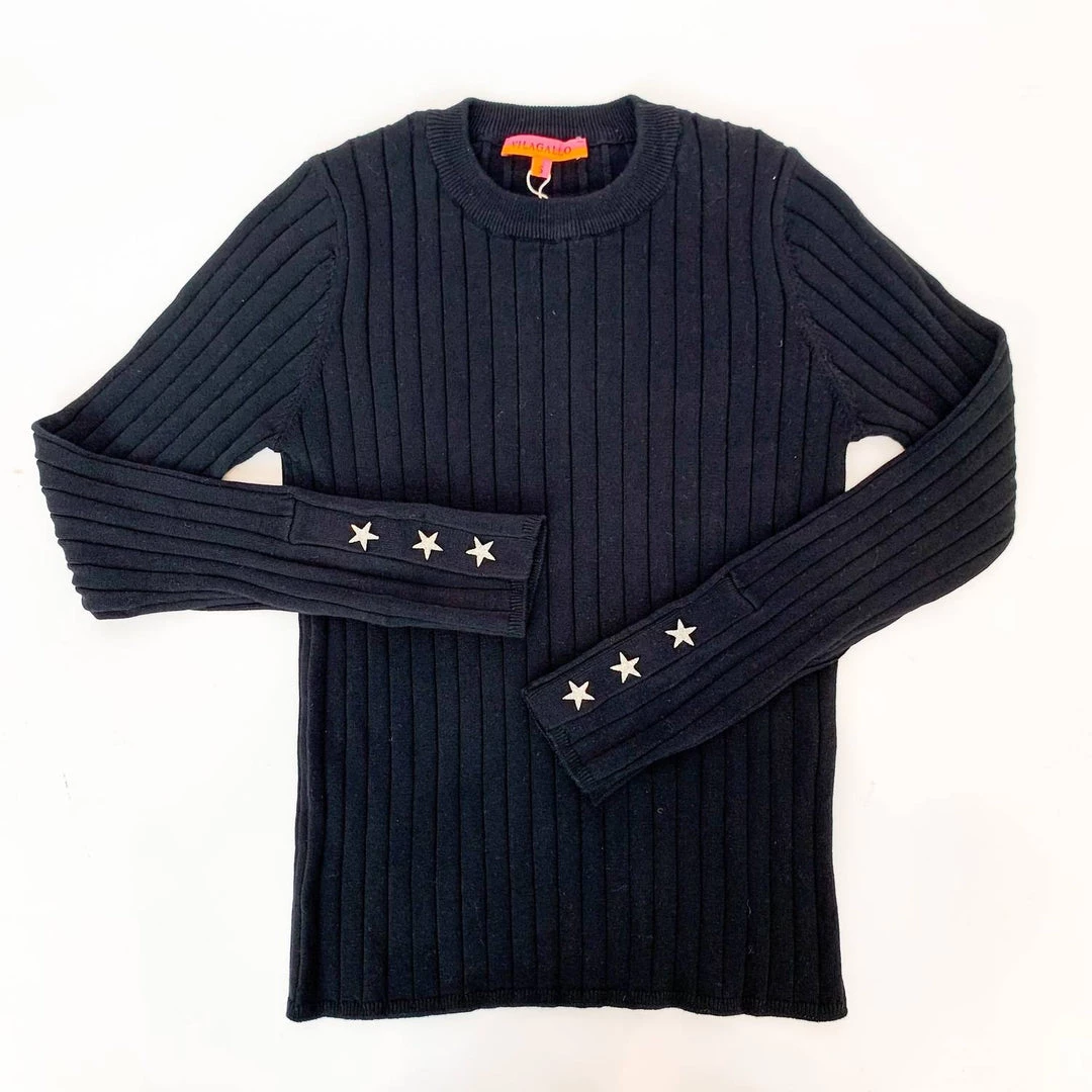DetailsRibbed Star Cuff TopRound necklineLong sleevesStar cuff button detailRib knit