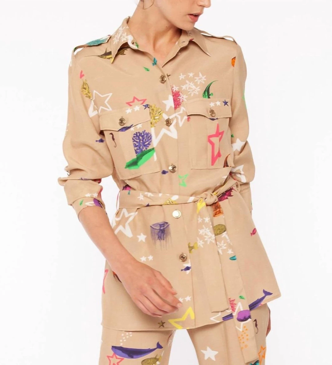 Exclusive Vilagallo Print Jacket. Removable Tie Closure. Integrated Front Pockets. No Lining.