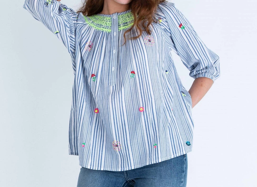 Featuring neon embroidered neckline, elasticated cuffs and sequin embroidered flowers throughout.Length – 65cmWash at 30Model is wearing a size SModel is a size 8/10 and is 5’9