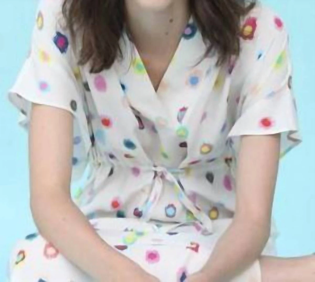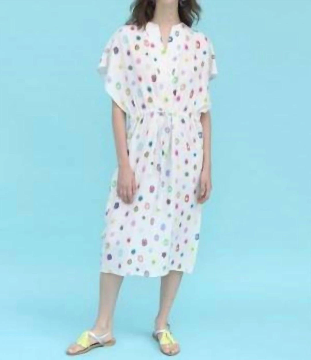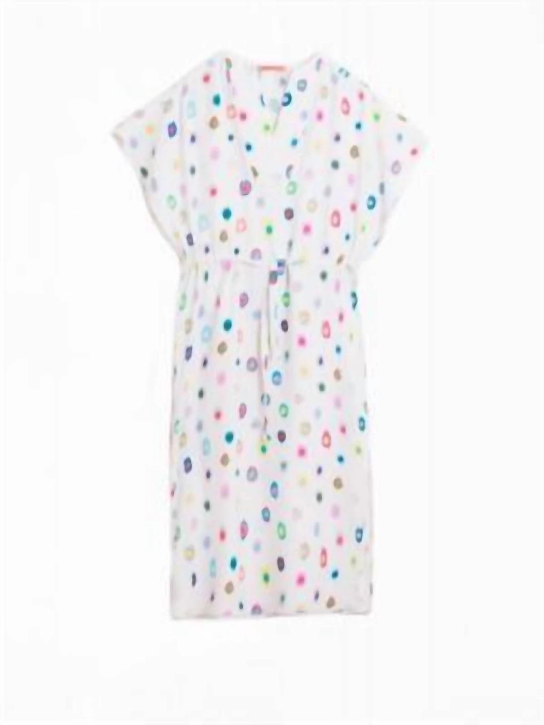 Features colorful leopard spot print over a white background.ΓΒ Drawstring waist and flowy sleeves complete the dress.ΓΒ 36 = 2 or XS38 = 4 or S40 = 6 or M42 = 8 or M44 = 10 or L46 = 12 or L