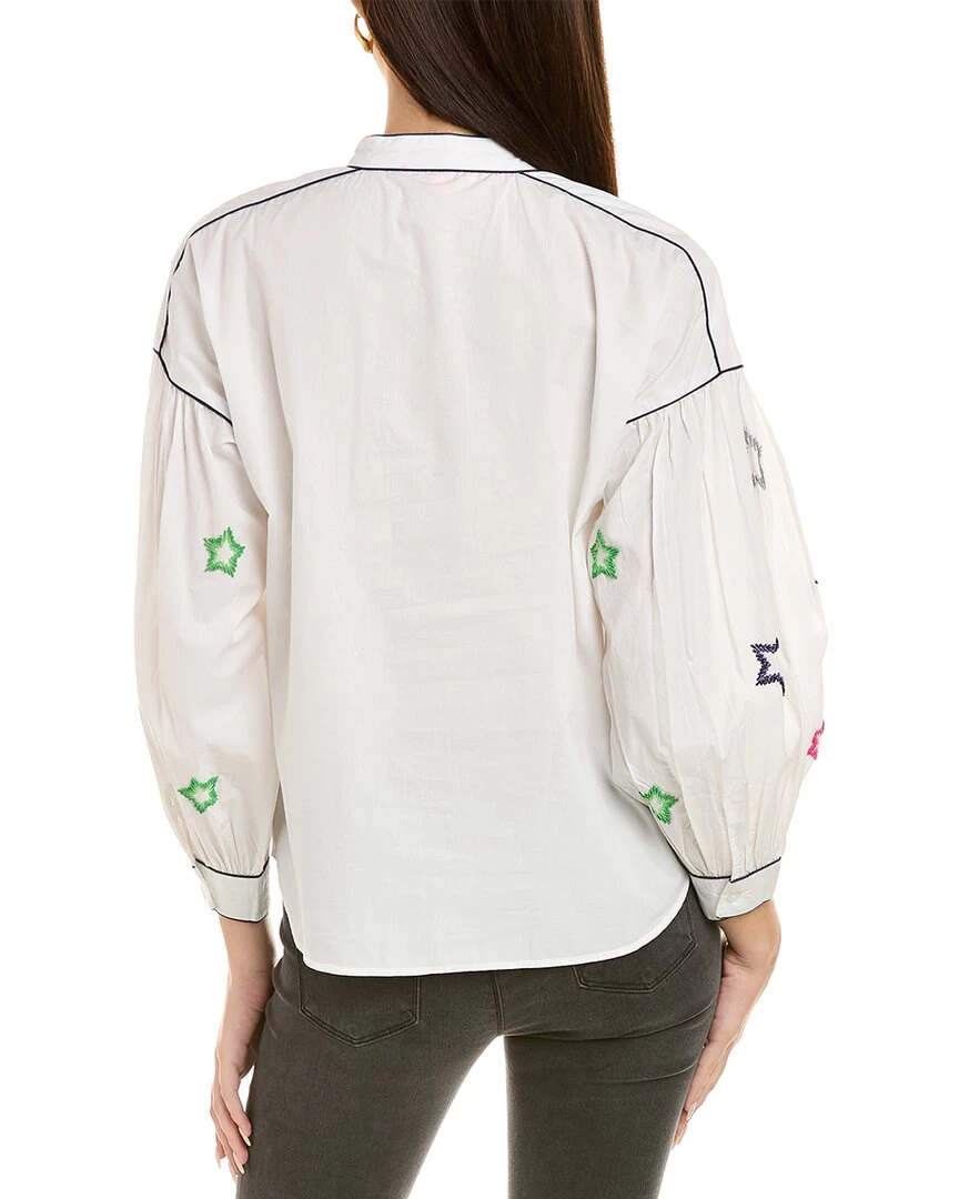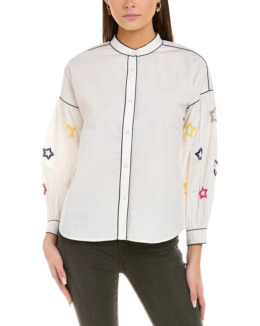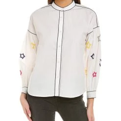 - Design Details – Band Collar, Piped Trim, Dropped-Shoulder Sleeves, Beaded Star Embellishments And Button Cuffs